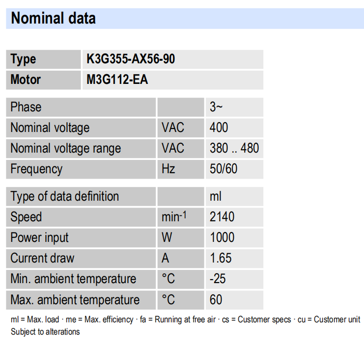 K3G355-RR06-G2電壓:200-277V電流:1.10A功率:250W 轉(zhuǎn)速:1450r/min 重量:10.8KG