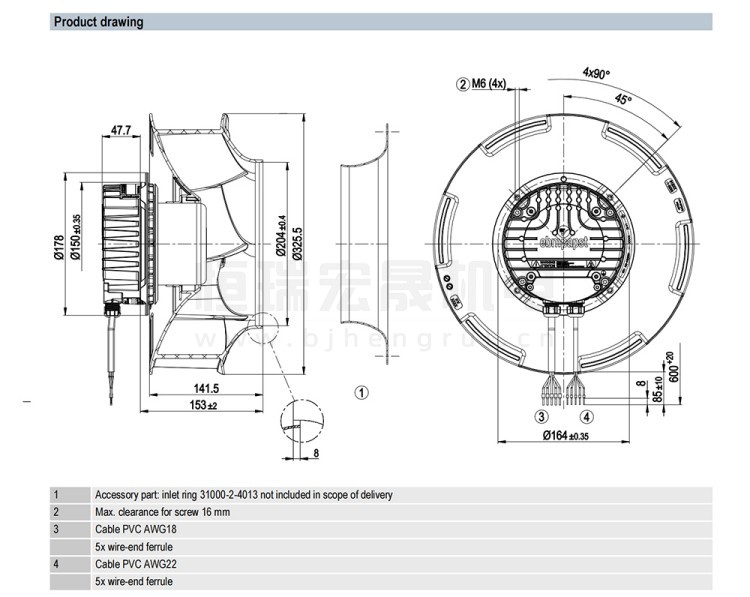 ebmpapst 離心風(fēng)機(jī) R3G310-RR05-H1 散熱風(fēng)扇
