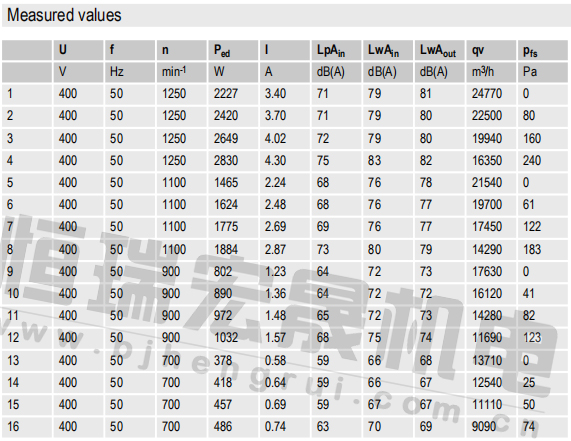 原裝軸流ebm風(fēng)機(jī)A3G710-AU21-01的曲線圖