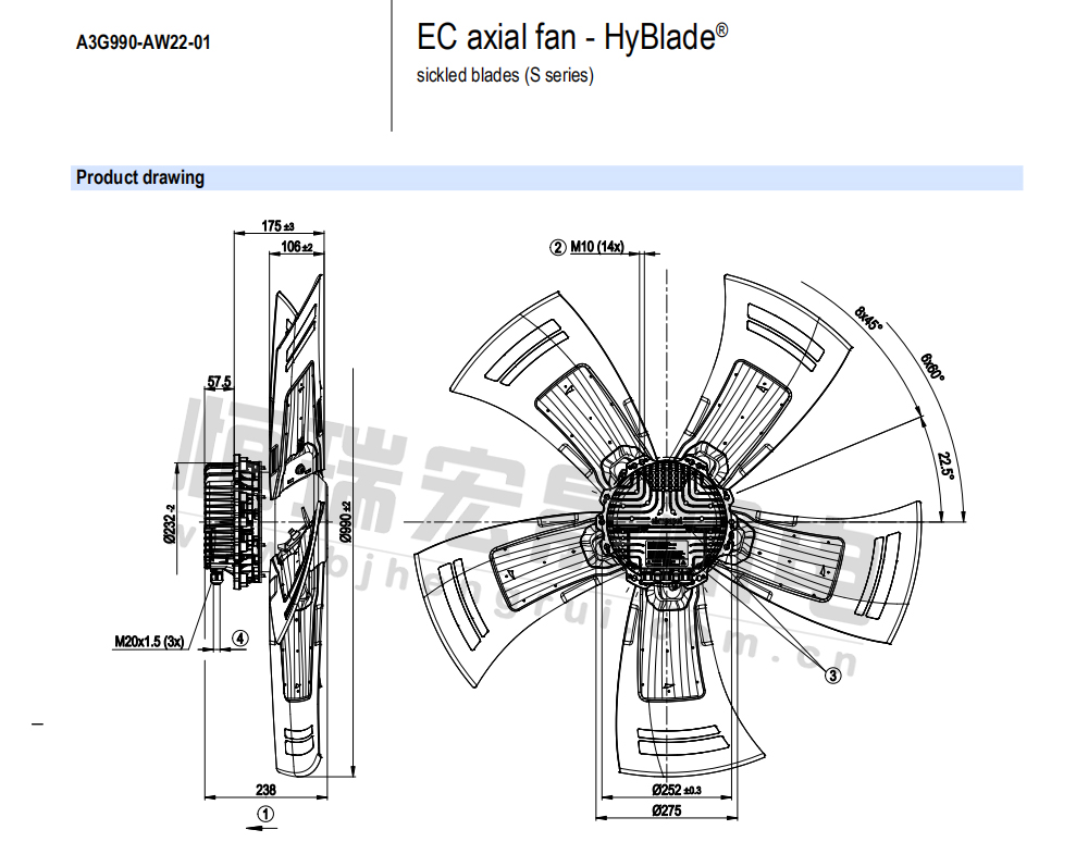 德國ebmpapst原裝A3G990-AW22-01風(fēng)機(jī)的規(guī)格圖