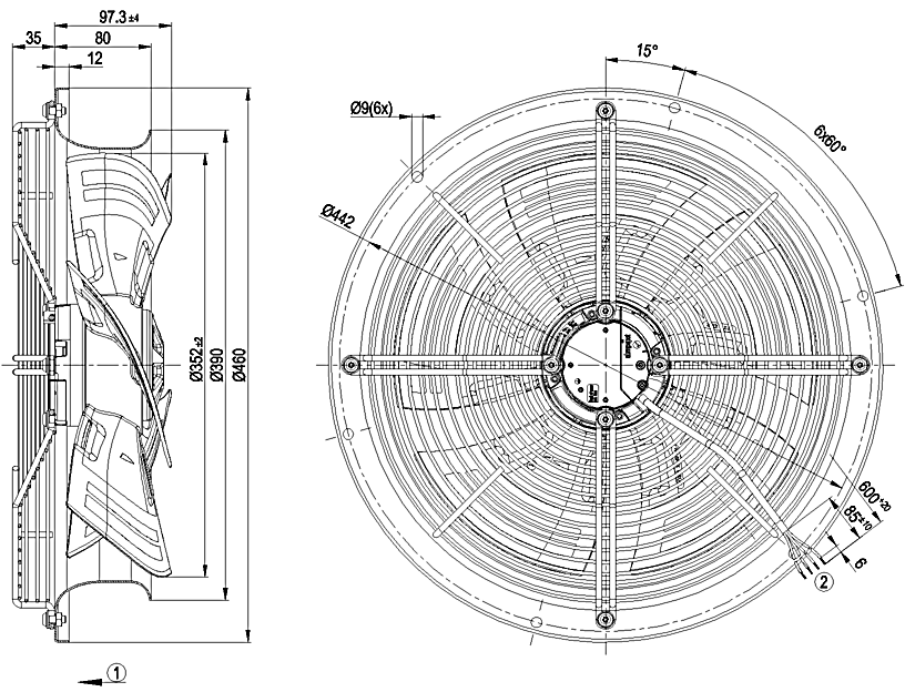原裝正品軸流ebm風(fēng)機(jī)W3G350-CN01-30的規(guī)格圖