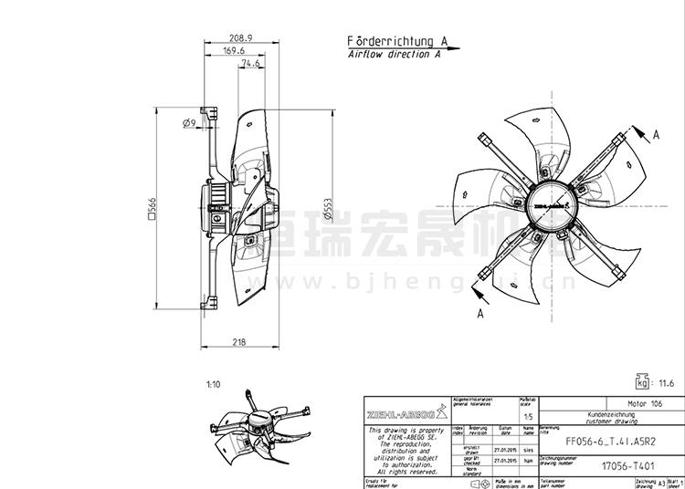 施樂百ziehl-abegg 軸流風機 FF056-6ET.4I.A5R2