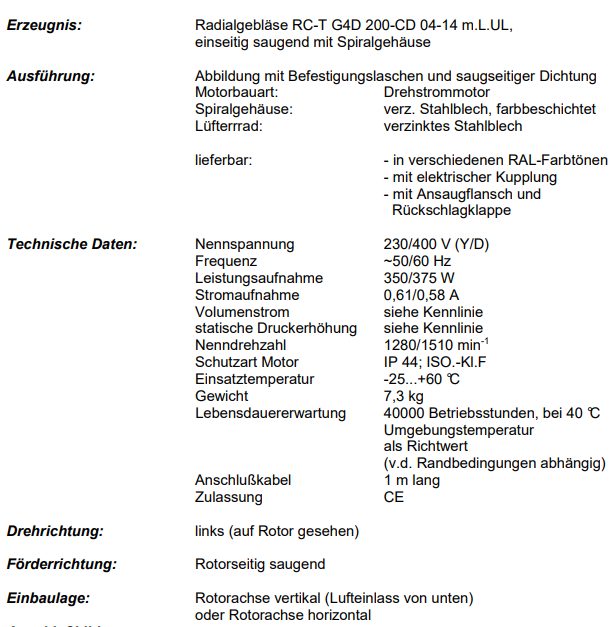 徑向鼓風機RC-T G4D 200-CD 04-14 mLUL,單側(cè)吸氣,帶螺旋外殼