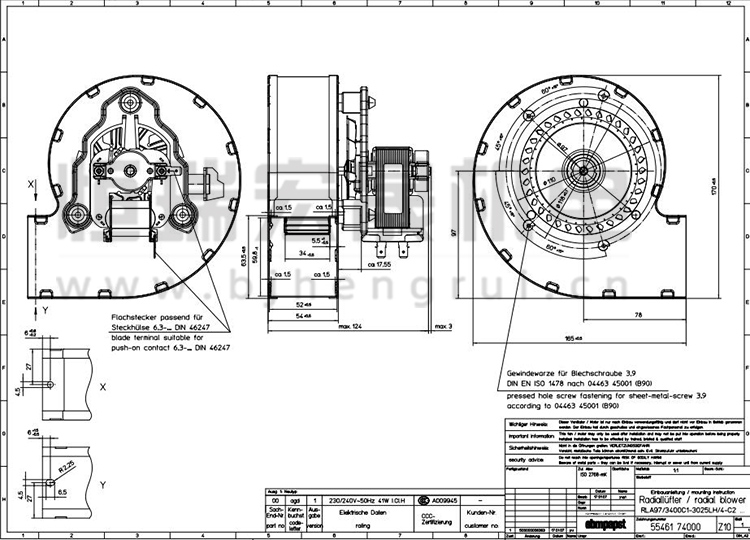 德國(guó)ebmpapst RLA97/3400C1-3025LH/4-C2離心風(fēng)機(jī)實(shí)拍圖