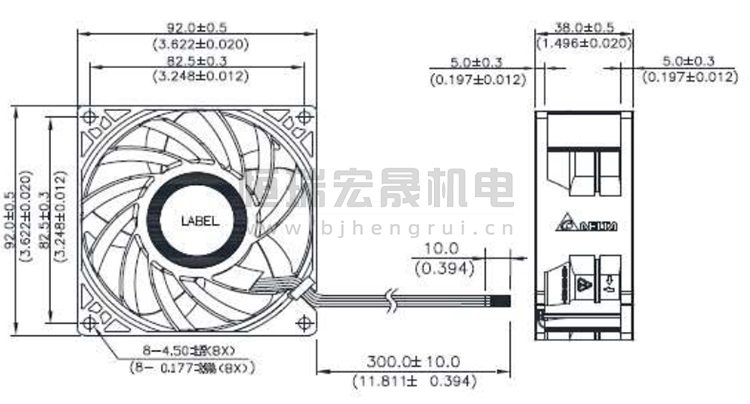 92*92*38mm 臺(tái)達(dá)Delta風(fēng)機(jī)結(jié)構(gòu)圖
