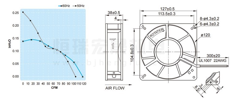 UF13A23BTH FULLTECH 福佑風機結構風量圖: